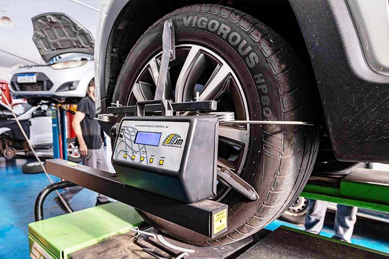 Ele é responsável por ajustar os ângulos das rodas, de forma que elas fiquem paralelas entre si e perpendiculares ao solo.